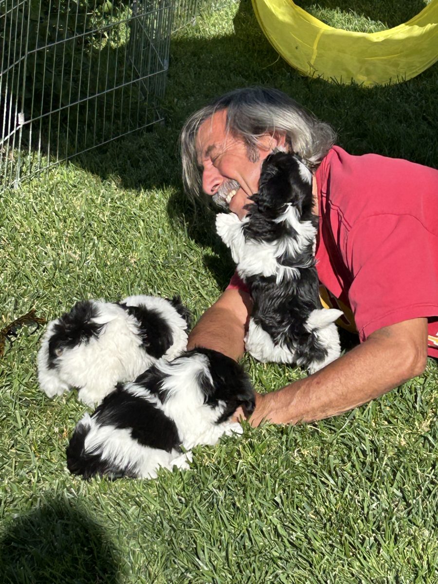 We take our puppies out into the community to hear sounds of everyday life. They meet new people, learn to be comfortable in a car and to adjust to new things. At seven weeks of age, we administer the Volhard Puppy Aptitude Test. We do this to assure that our puppies are placed in the right homes for them.